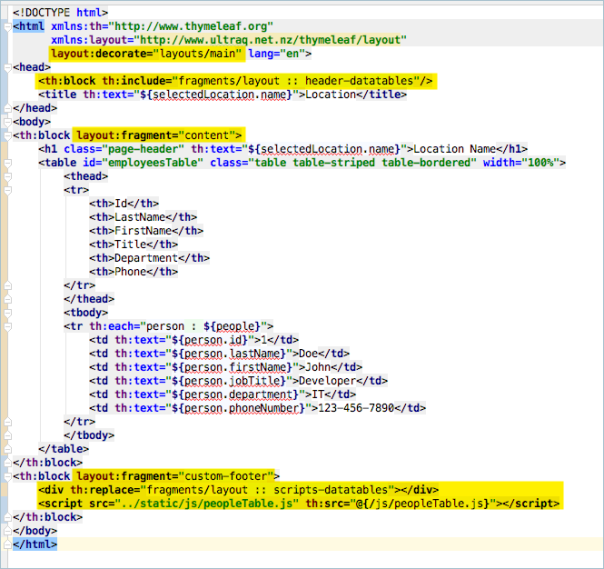 As you can see a combination of ThymeLeaf Fragments and ThymeLeaf Layouts is very powerful and this is just scratching the surface of what ThymeLeaf can do.