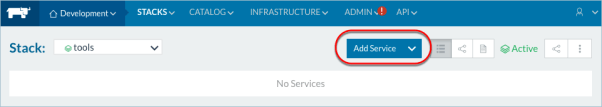 First we need to add a stack to run our service in. In the development environment click the Add Stack button. I’m going to called mine ‘tools’ and then just create an empty stack.